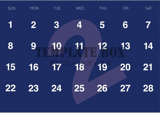 無料テンプレート:2026年2月カレンダー:横型青のカレンダー