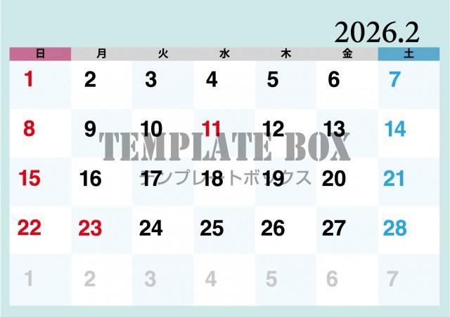 2026年2月カレンダー:予定を書き込みやすいカレンダー