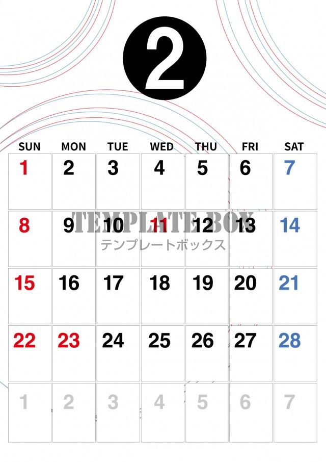 2026年2月カレンダー:シンプルデザインのカレンダー