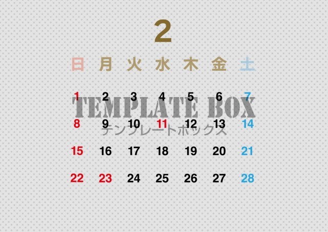 無料テンプレート:2026年2月カレンダー:横型グレーの背景素材