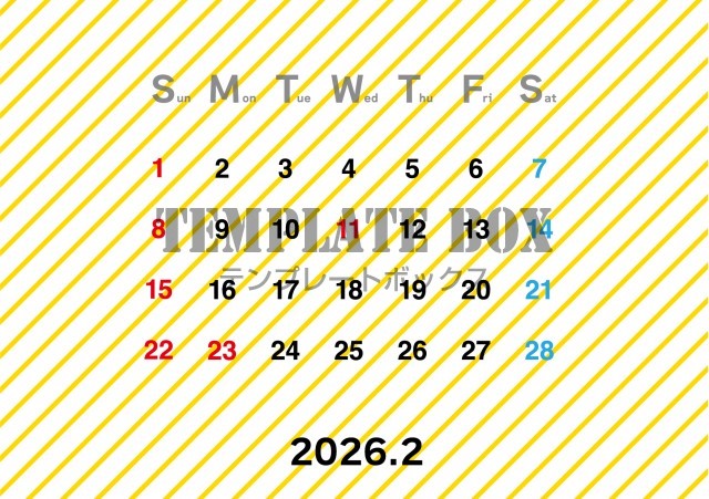 2026年2月カレンダー:横型ストライプ柄カレンダー