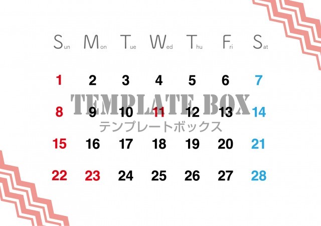 無料テンプレート:2026年2月カレンダー:横型モダンなデザイン