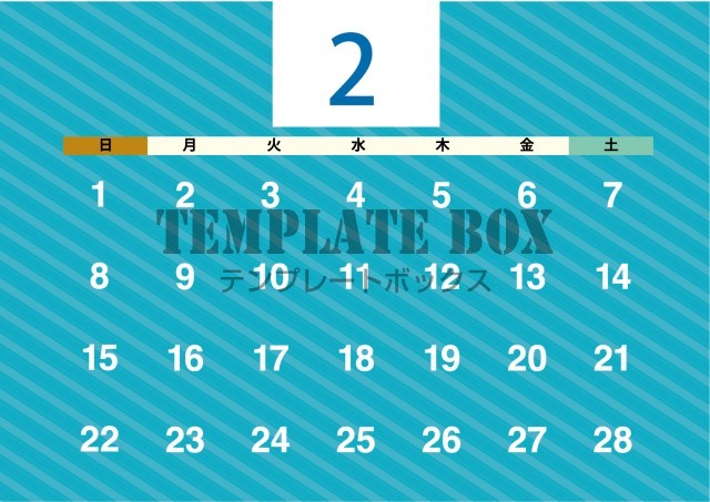 無料テンプレート:2026年2月カレンダー:横型斜めのデザインカレンダー