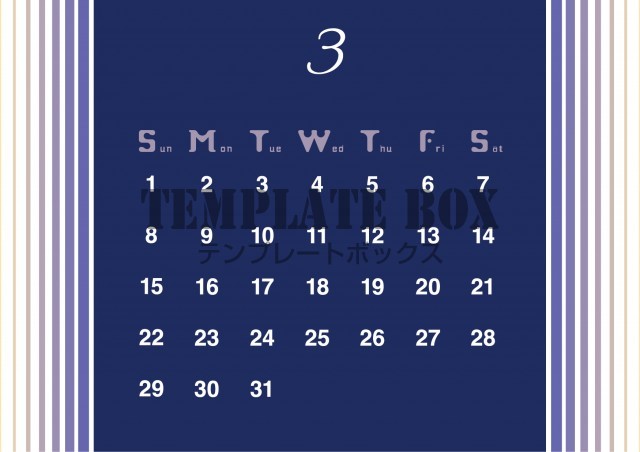 ストライプ柄がかっこいいカレンダー素材です。2026年3月カレンダーです…
