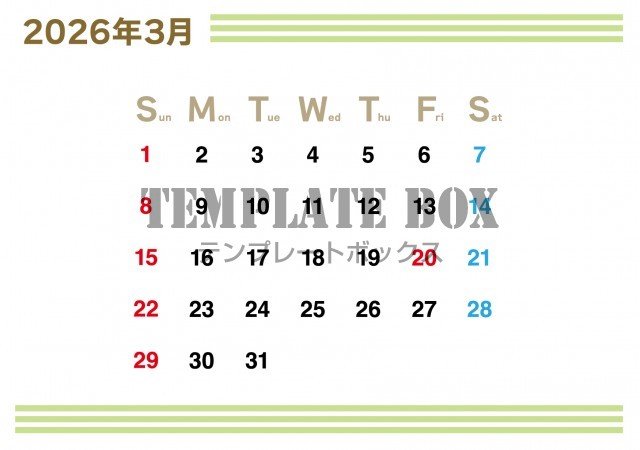 ストライプ柄がかっこいいカレンダー素材です。2026年3月カレンダーです…