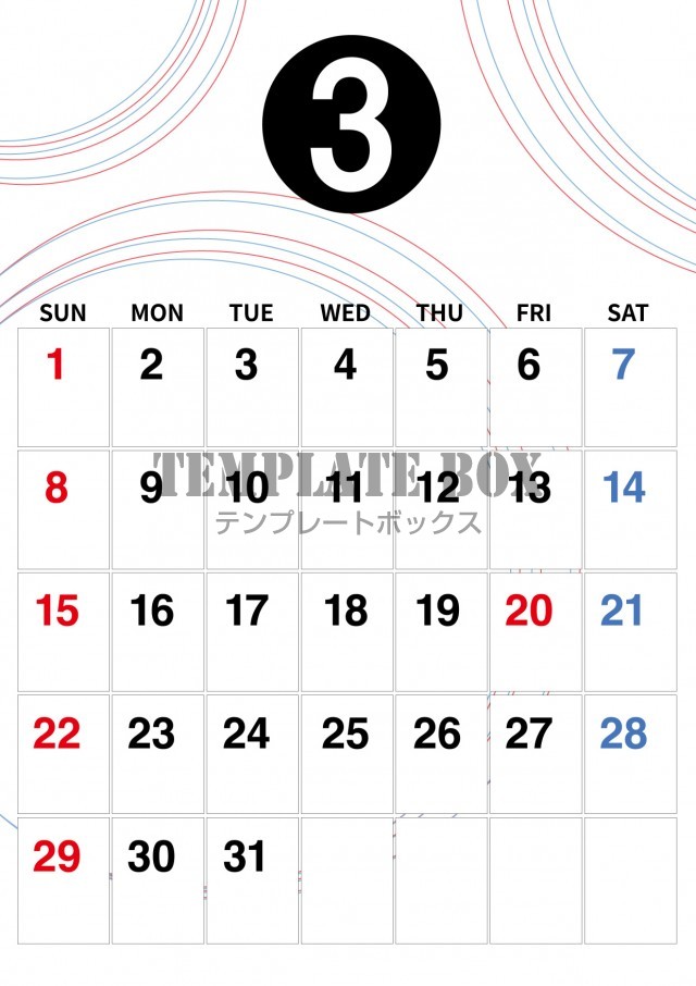 無料テンプレート:2026年3月カレンダー:シンプルおしゃれカレンダー