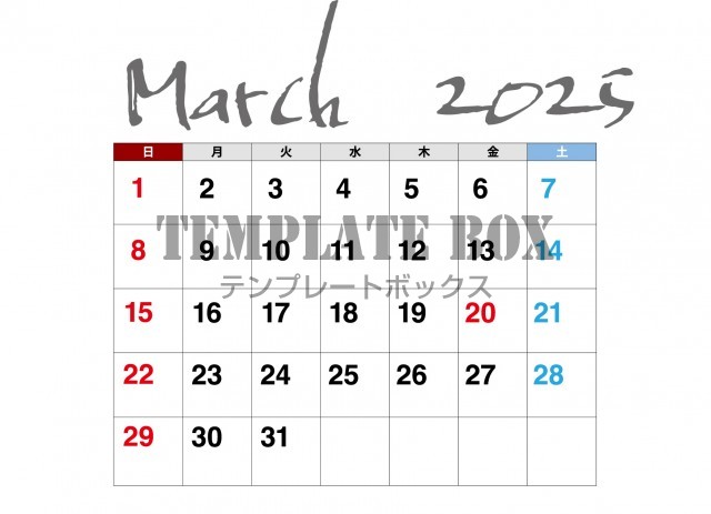 無料テンプレート:2026年3月カレンダー:横型シンプルデザインカレンダー