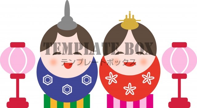 無料イラスト素材:3月3日のひな祭りに使えるイラスト素材、可愛いお雛様とぼんぼり飾りのイラスト