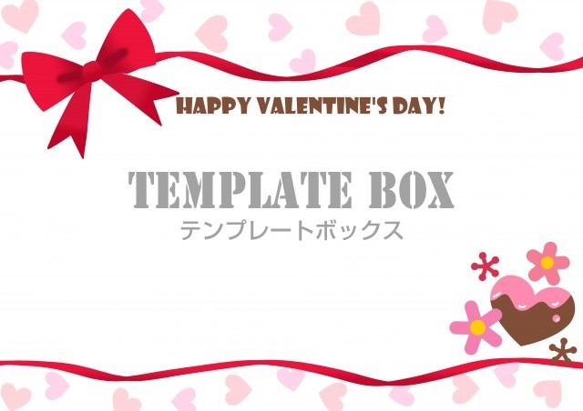 無料テンプレート:リボン枠 バレンタインカード 真っ赤なリボンとハートのフレーム