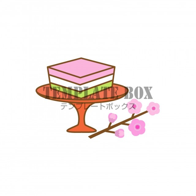 無料イラスト素材:3月3日の桃の節句に使えるワンポイントイラスト、菱餅と桃の花