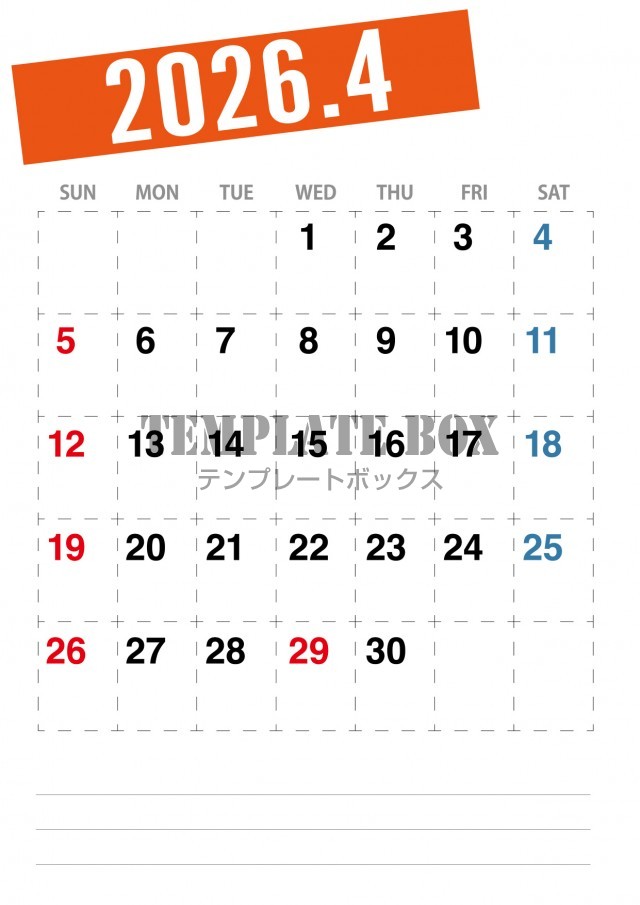 2026年4月カレンダー:スケジュール管理に最適