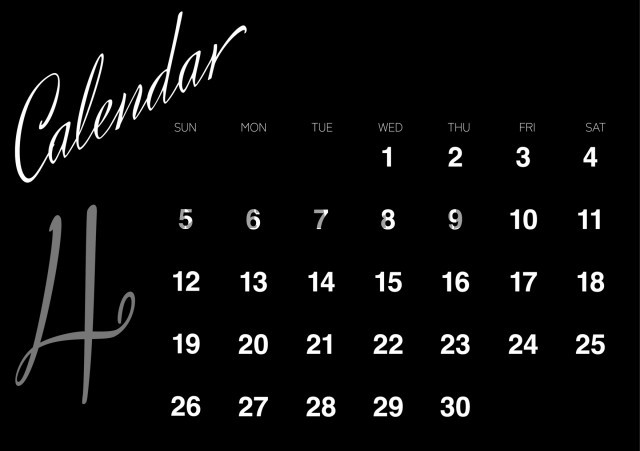 無料テンプレート:2026年4月カレンダー:ブラックカラーカレンダー
