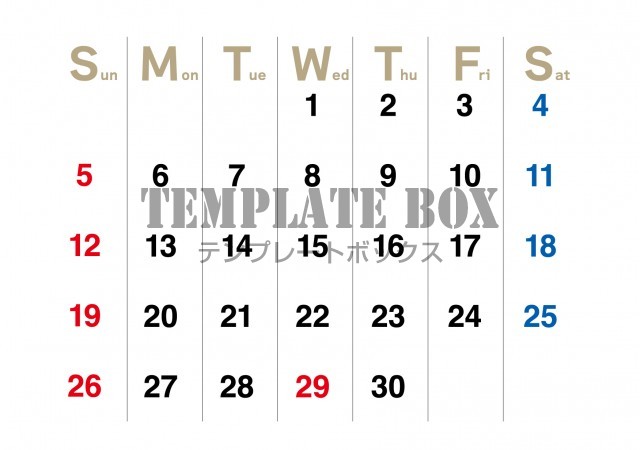 おしゃれな目立つくっきりデザインのカレンダー素材です。オフィスやご自宅用…