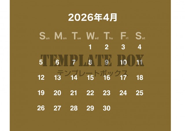 無料テンプレート:2026年4月カレンダー:シックなおしゃれなカレンダー