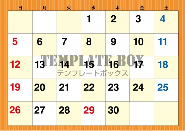 無料テンプレート:2026年4月カレンダー:横型オレンジ色カレンダー