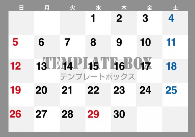 無料テンプレート:2026年4月カレンダー:横型グレーのカレンダー