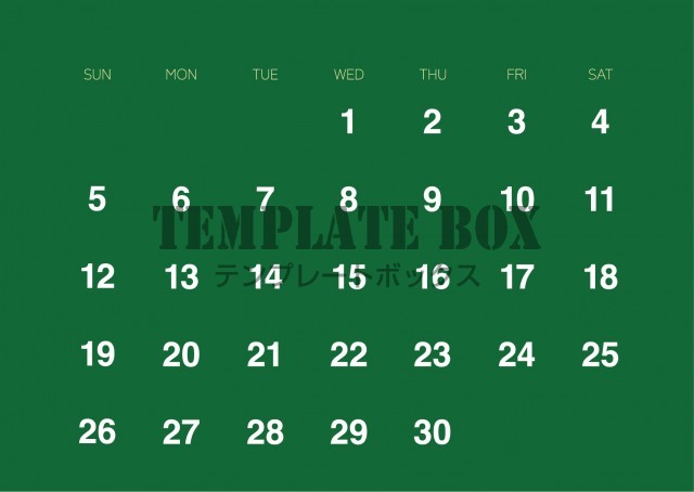 グリーンがすてきなおしゃれなカレンダーです。2026年4月カレンダーです…
