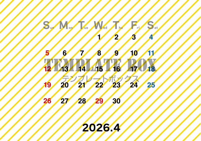 無料テンプレート:2026年4月カレンダー:横型斜めのデザイン