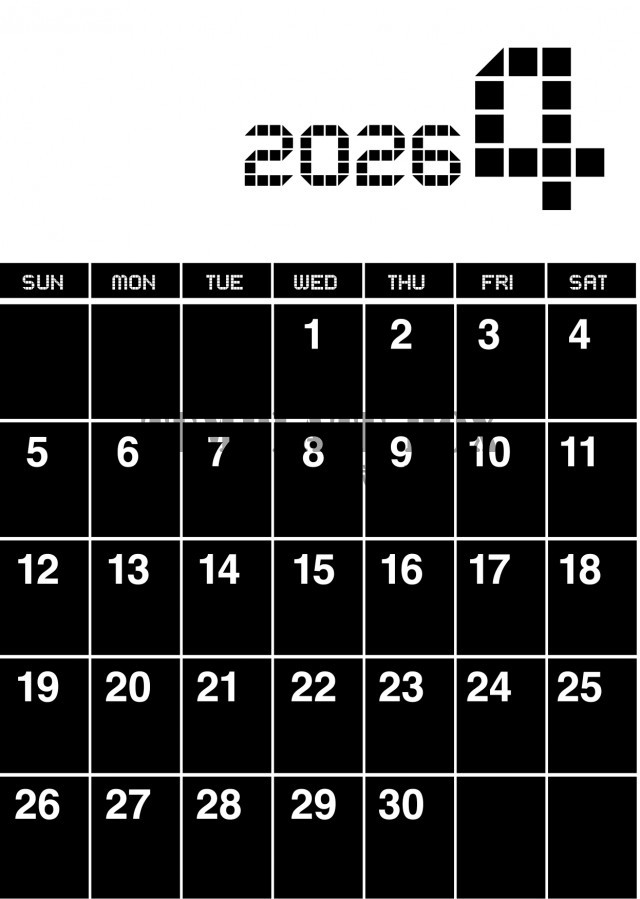 2026年4月カレンダー:縦型モノクロシンプルデザイン