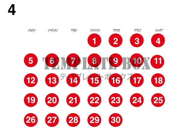 無料テンプレート:2026年4月カレンダー:横型白抜きカレンダー