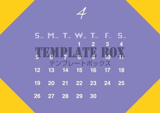 横型の三角がかわいい2026年4月カレンダーです。派手なデザインがお好み…