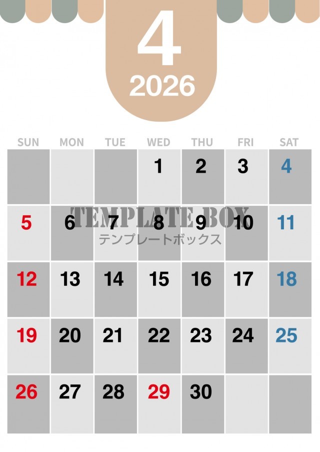 無料テンプレート:2026年4月カレンダー:縦型モダンデザイン