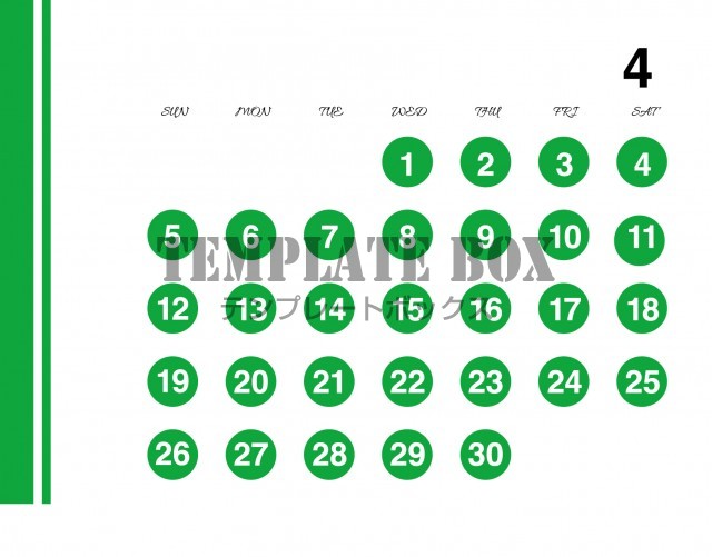 2026年4月カレンダー:横型水玉カレンダー