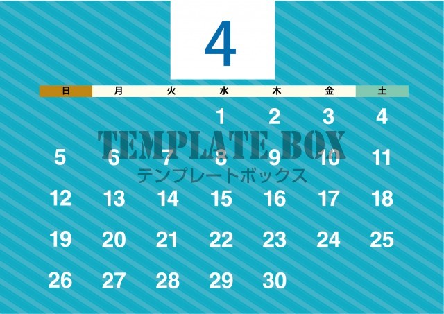 無料テンプレート:2026年4月カレンダー:斜めのデザインカレンダー