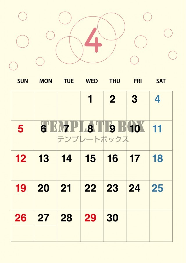 2026年4月カレンダー:縦型白抜き赤のカレンダー