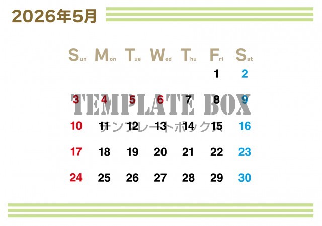 2026年5月カレンダー:横型ストライプ柄カレンダー