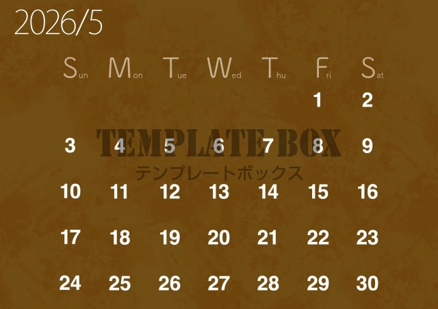 無料テンプレート:2026年5月カレンダー:横型質感あるカレンダー