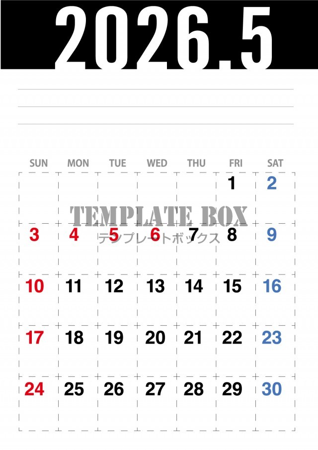 無料テンプレート:2026年5月カレンダー:縦型使いやすいカレンダー