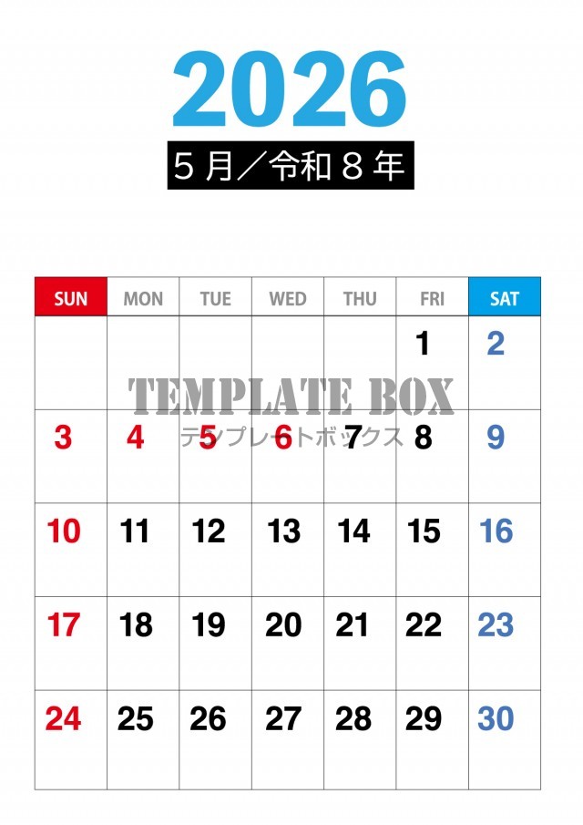 2026年5月カレンダー:縦型シンプルビジネス用