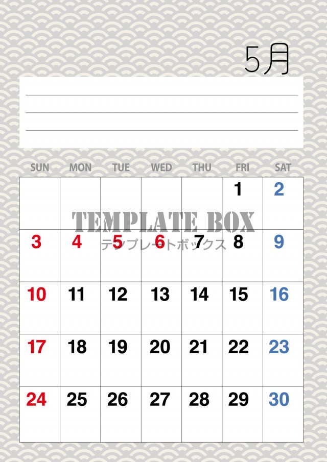 2026年5月カレンダーです。市松模様柄のおしゃれなカレンダーです。和風…