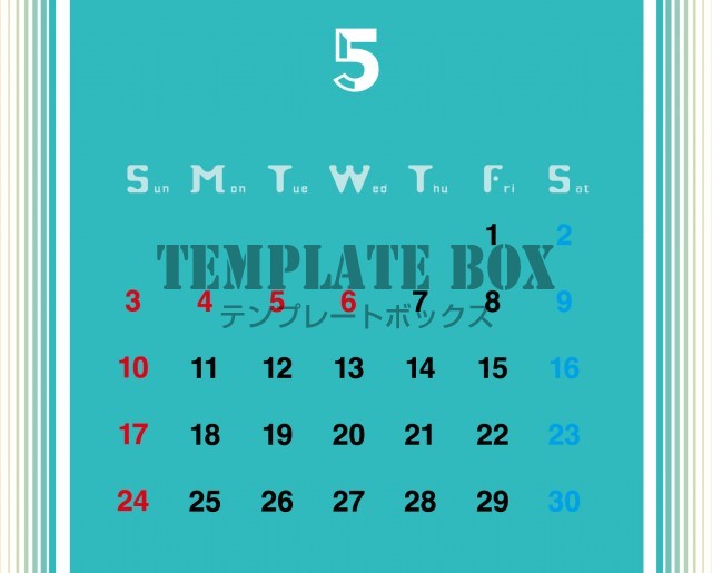 爽やかカレンダーです。2026年5月カレンダーです。モダンなデザインでど…