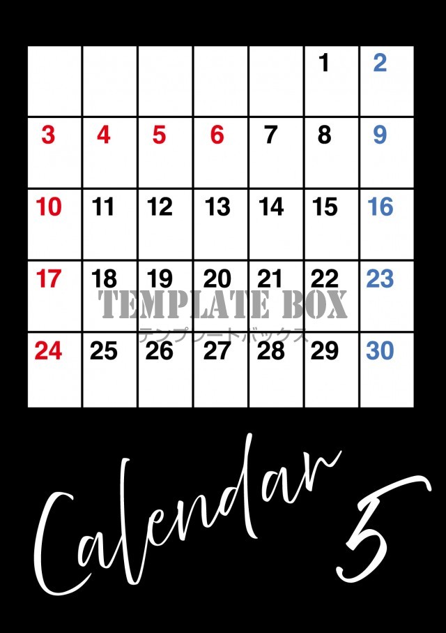 背景が黒で予定を書き込めて便利なカレンダー素材です。シックなお店やご自宅…