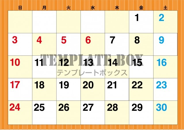 無料テンプレート:2026年5月カレンダー:オレンジ色カレンダー