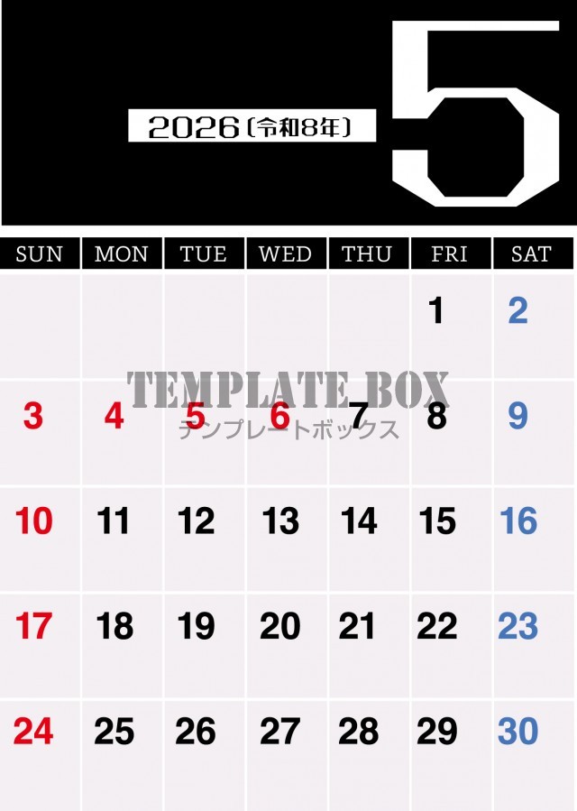 2026年5月カレンダー:シンプルカレンダー