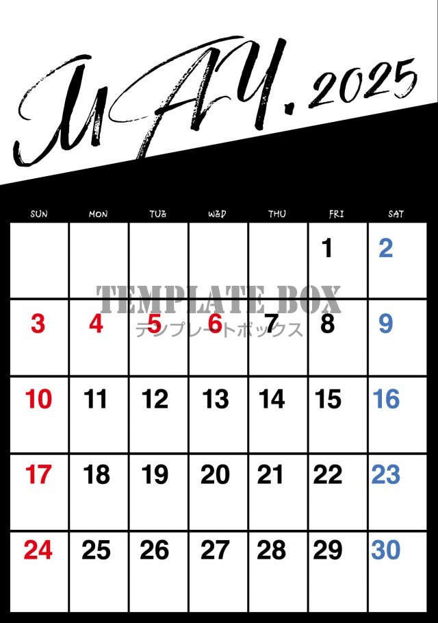無料テンプレート:2026年5月カレンダー:みやすいカレンダー