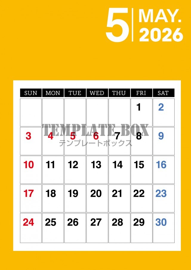 2026年5月カレンダー:シンプルなカレンダー