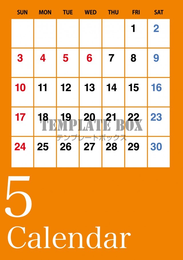 2026年5月カレンダー:オレンジ色カレンダー