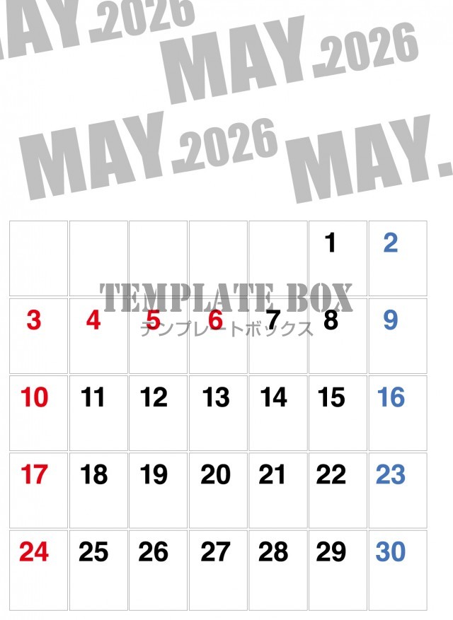 モノクロデザインがかっこいいカレンダー素材になります。2026年5月カレ…