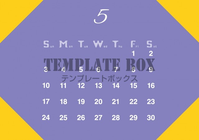 黄色のおしゃれなカレンダーです。2026年5月カレンダーです。派手なデザ…