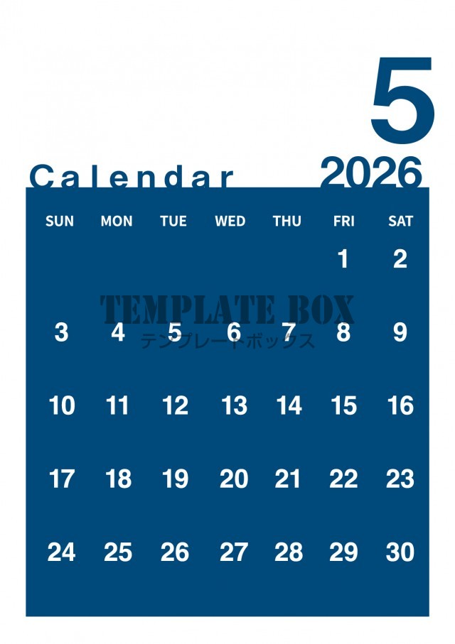 無料テンプレート:2026年5月カレンダー:縦型青のおしゃれなカレンダー