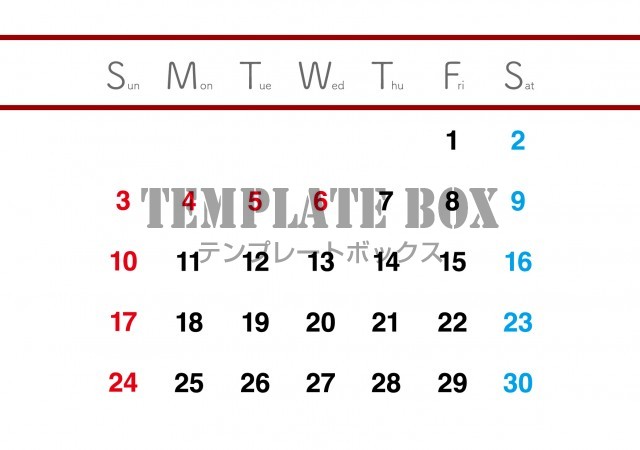 2026年5月カレンダー:横型赤の白抜きカレンダー