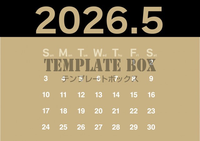 2026年5月カレンダー:シンプルでかっこいいカレンダー