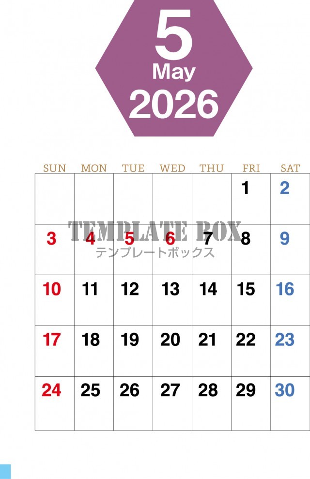 オフィスやご自宅用としてご利用いただけるデザインです。2026年5月カレ…