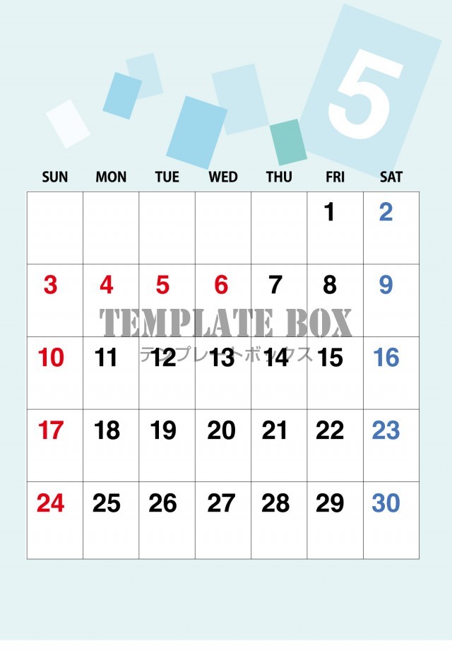 2026年5月カレンダー:シンプルで爽やかカレンダー