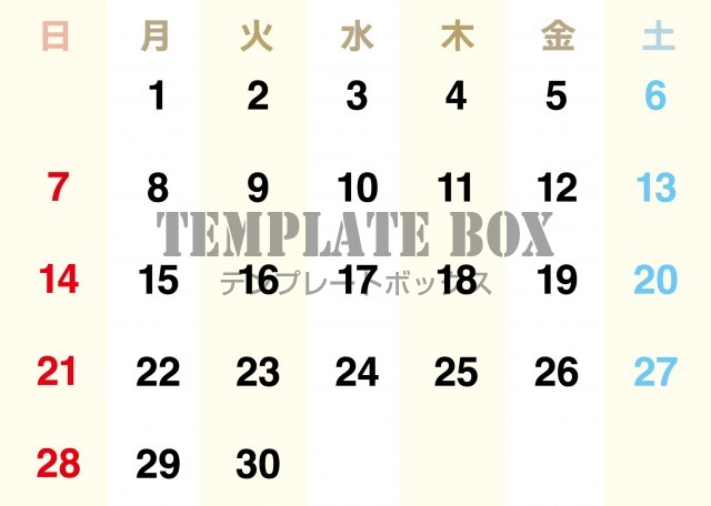 無料テンプレート:2026年6月カレンダー:横型ストライプの素材