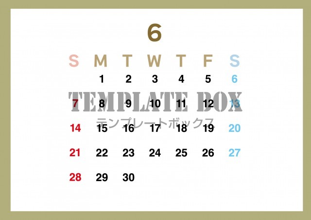 2026年6月カレンダー:横型かわいい配色カレンダー